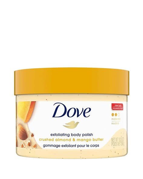 Energize your skin with the Dove Crushed Almond And Mango Butter Exfoliating Body Polish Scrub . This mango body polish exfoliates the skin to remove dead skin cells. It is a moisturizing body polish that locks moisture in the skin. The Dove body polish is also a brightening scrub that provides soft and radiant skin.