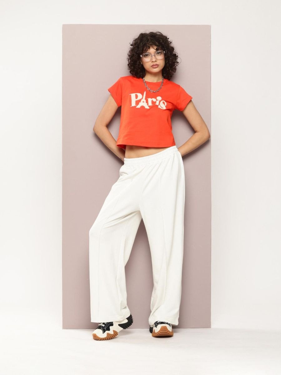 Kaçtto Womens Regular Cropped Short Sleeve Embroidery T-shirt - Orange