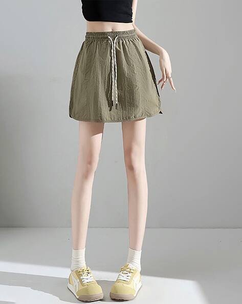 WAIST TYPE:Elasticated Drawstring Waist,PATTERN:Solid,SILHOUETTE:A-line,LENGTH:Mini,CLOSURE:Slip-on,HEMLINE:Straight,