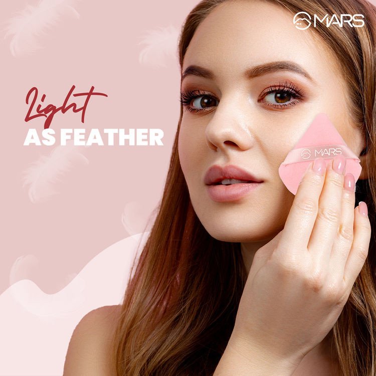 Then gently press and roll the puff onto your skin, starting from the center and moving outward.