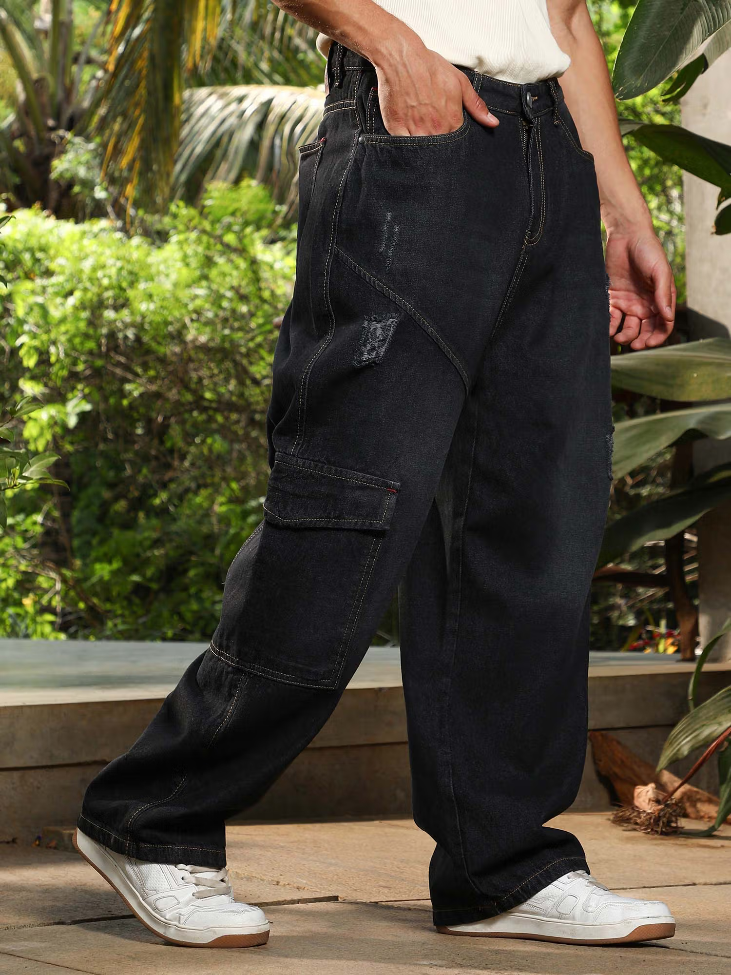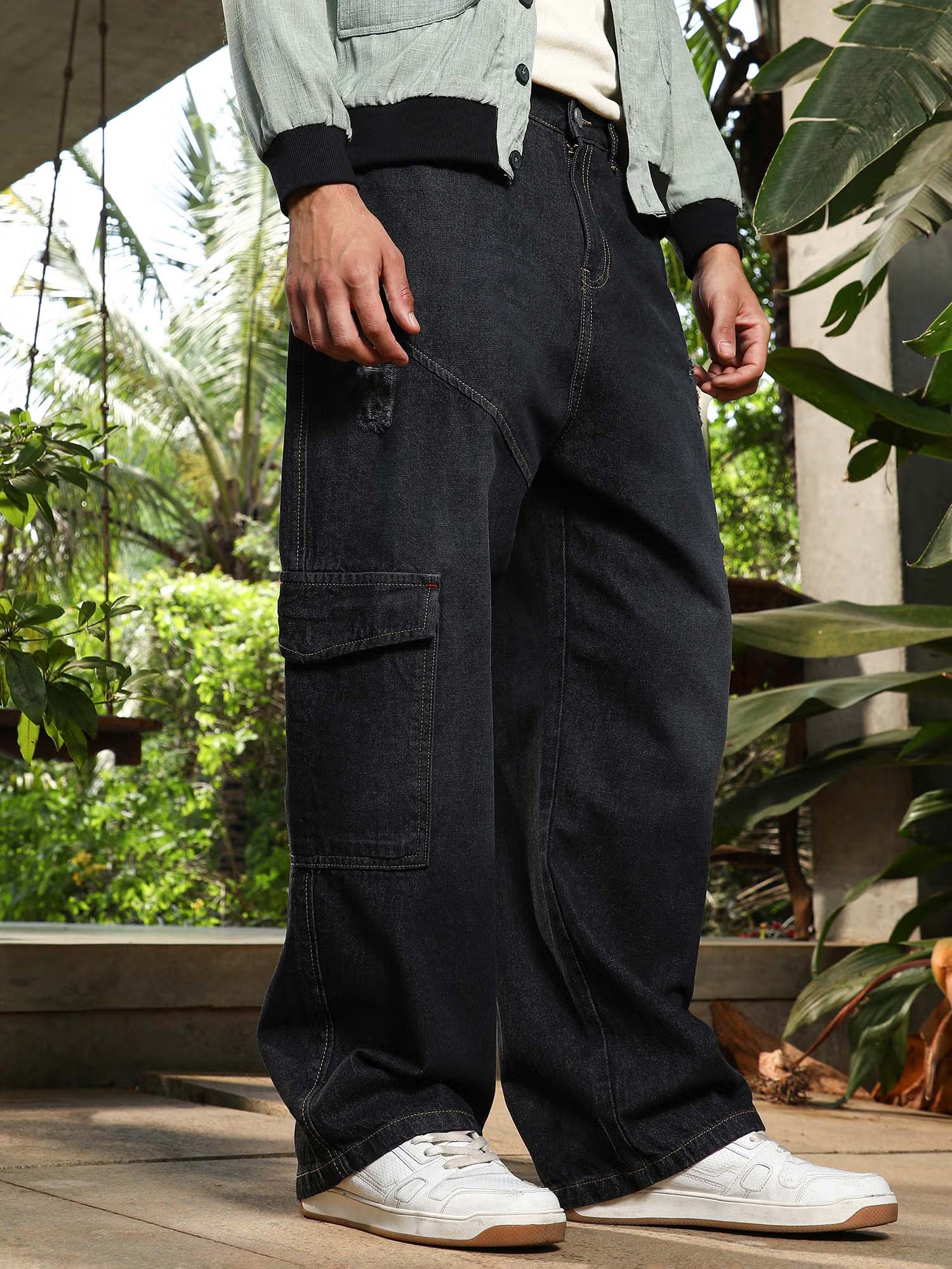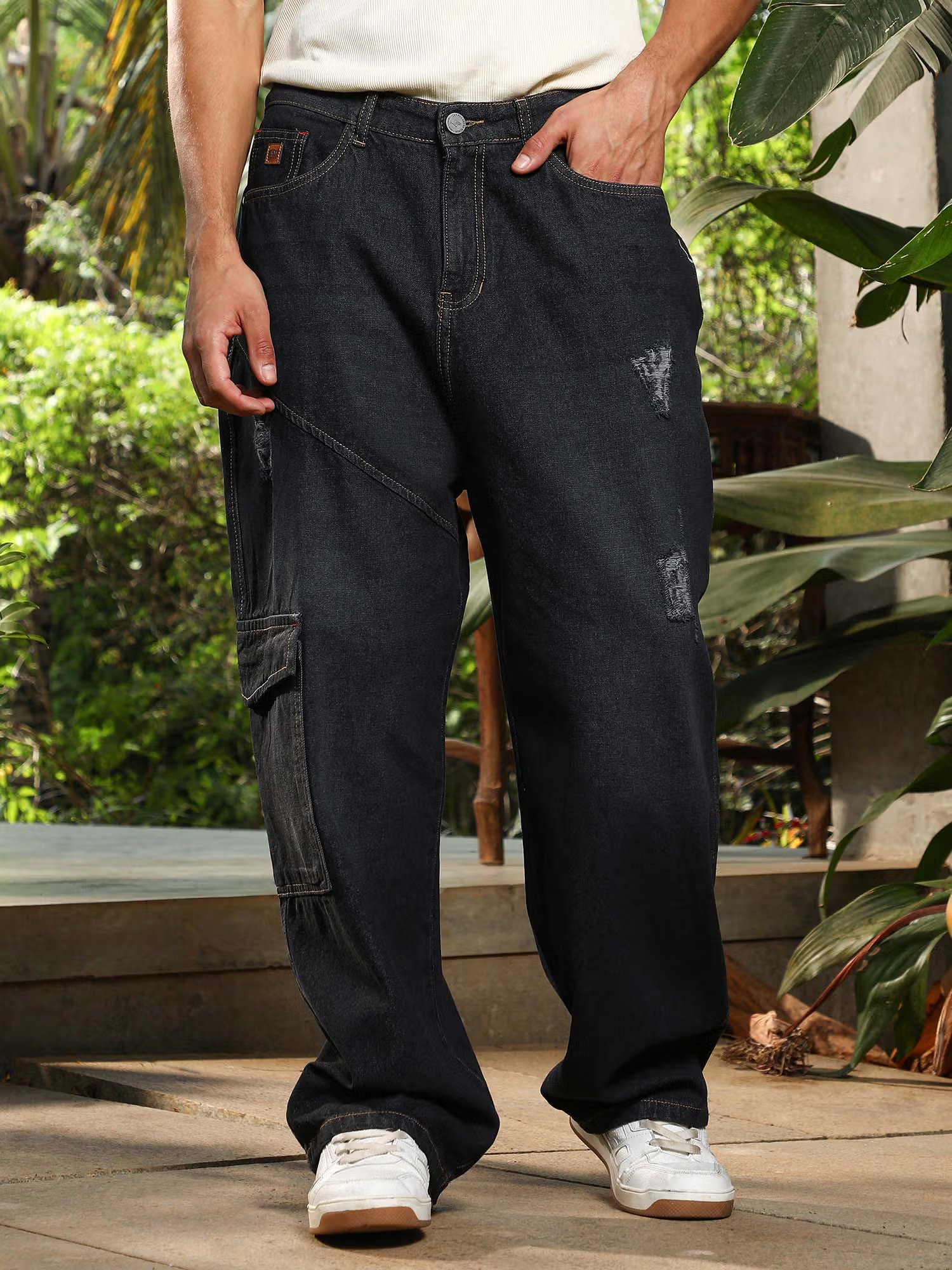 Men'S Charcoal Black Tinted Relaxed-Utility Denim Jeans