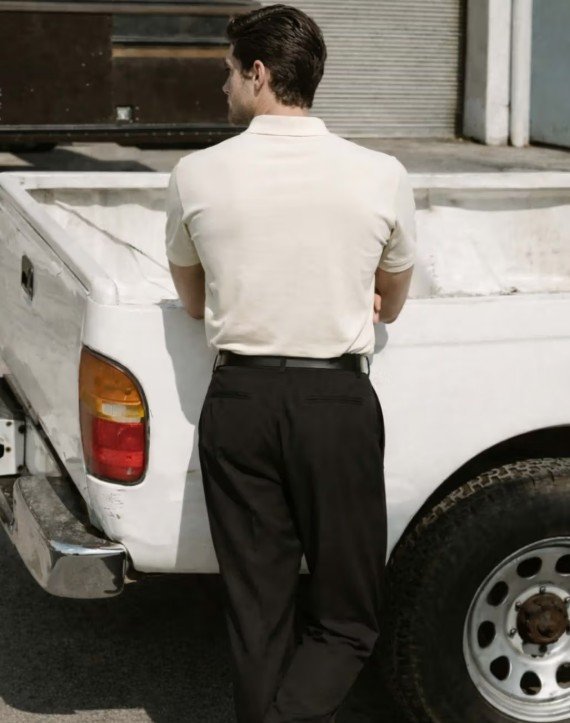 Men's Slim Fit Solid Cream Pique Polo Tshirt