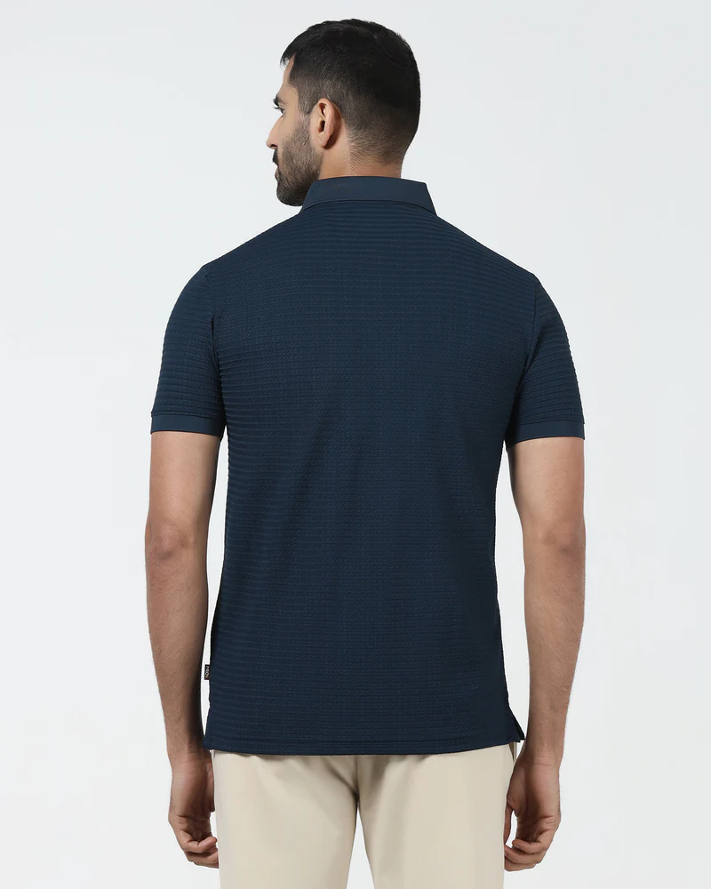 This isn't your average polo! Our navy piece uniquely combines geometric jacquard texture with a slim cut that feels sharp. Firebird branding hits the chest, keeping it subtle, but not forgettable. It stretches when you move, resists wrinkles when you don't, and Smart Dry tech keeps you fresh long after the AC gives up. Structure, comfort, and a chic silhouette, all packed into one clean, no-nonsense piece.