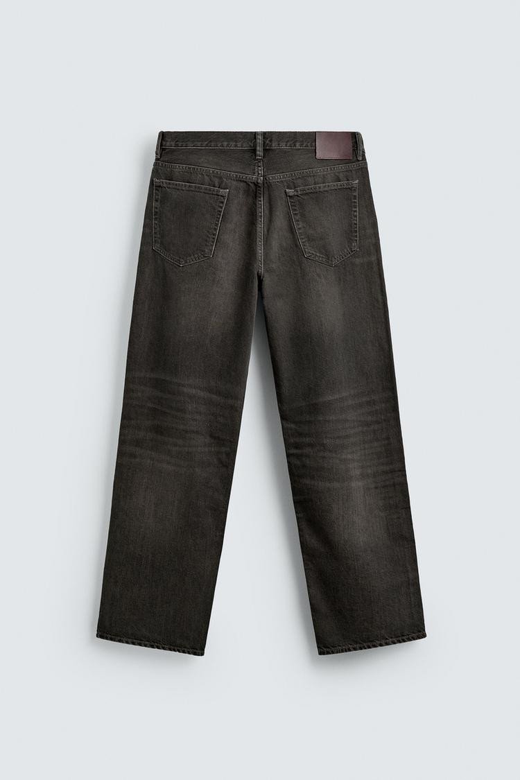 Straight-leg jeans from hip to ankle, with a fit that neither tapers nor widens. Mid-waist. Rigid fabric.