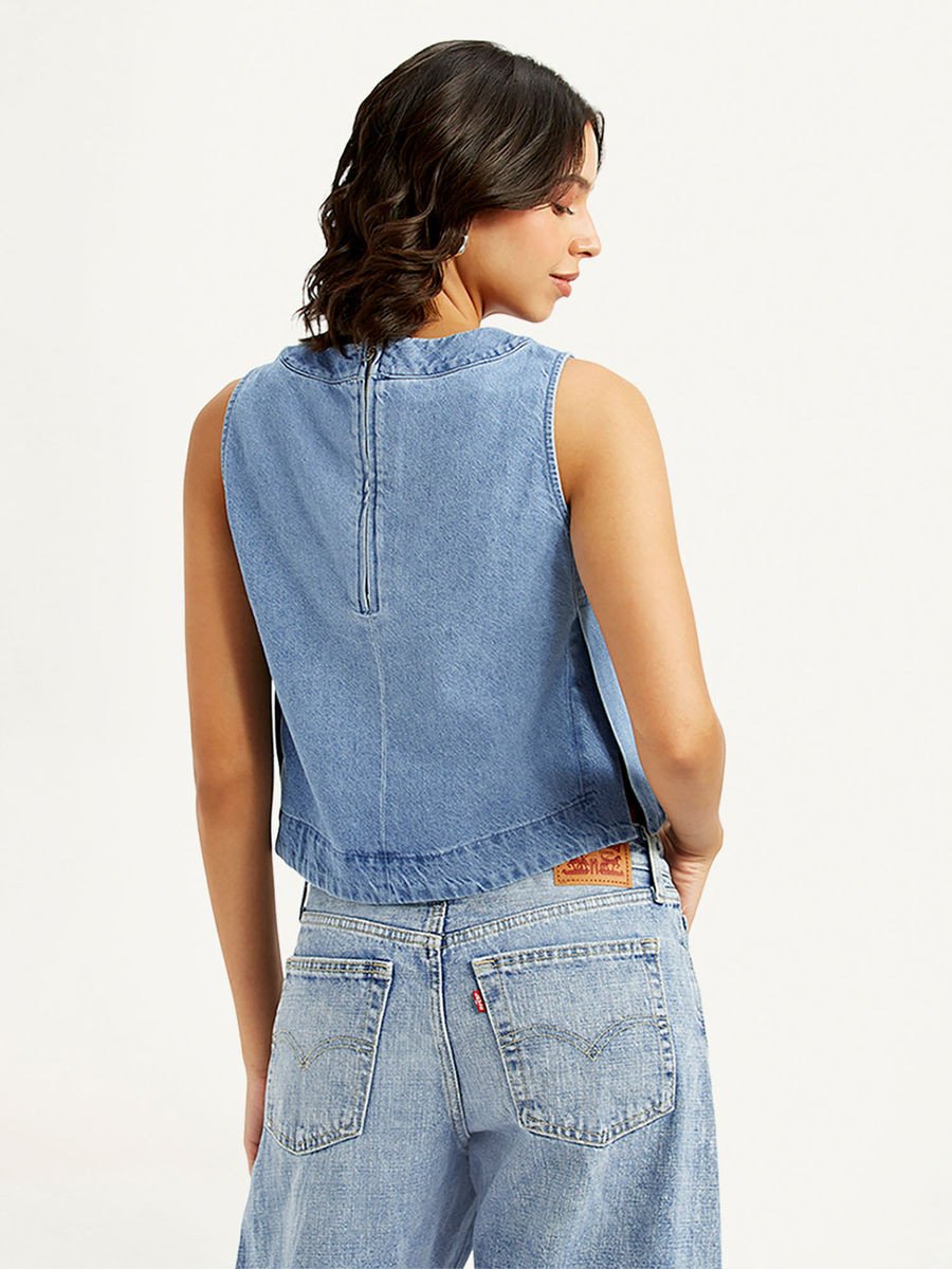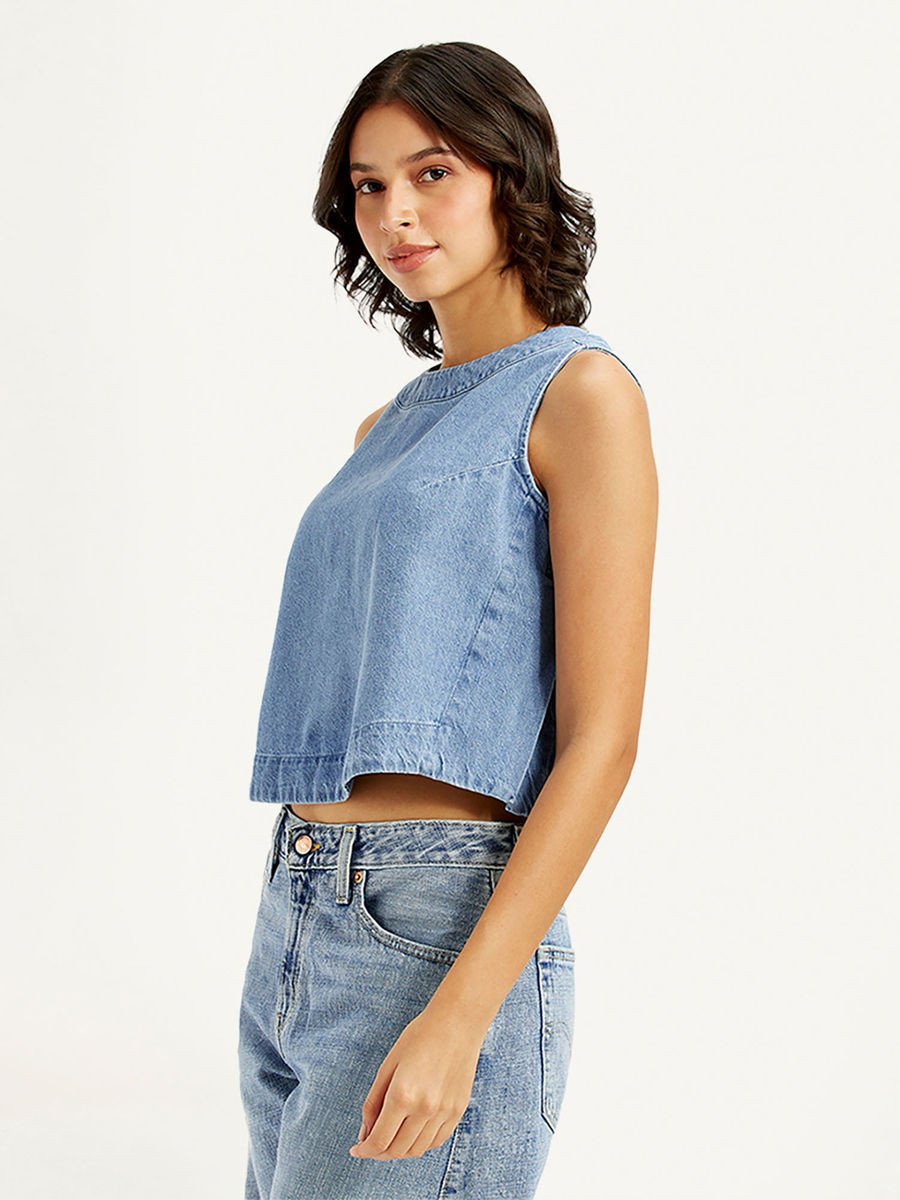 Blue Solid Regular Fit Top