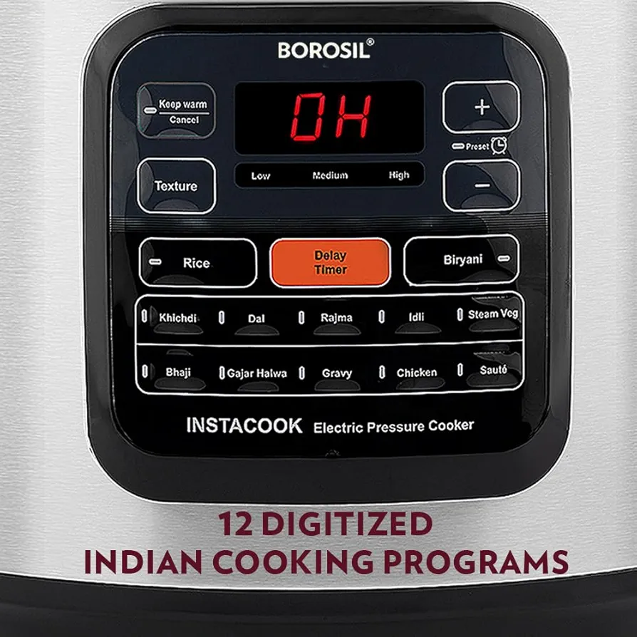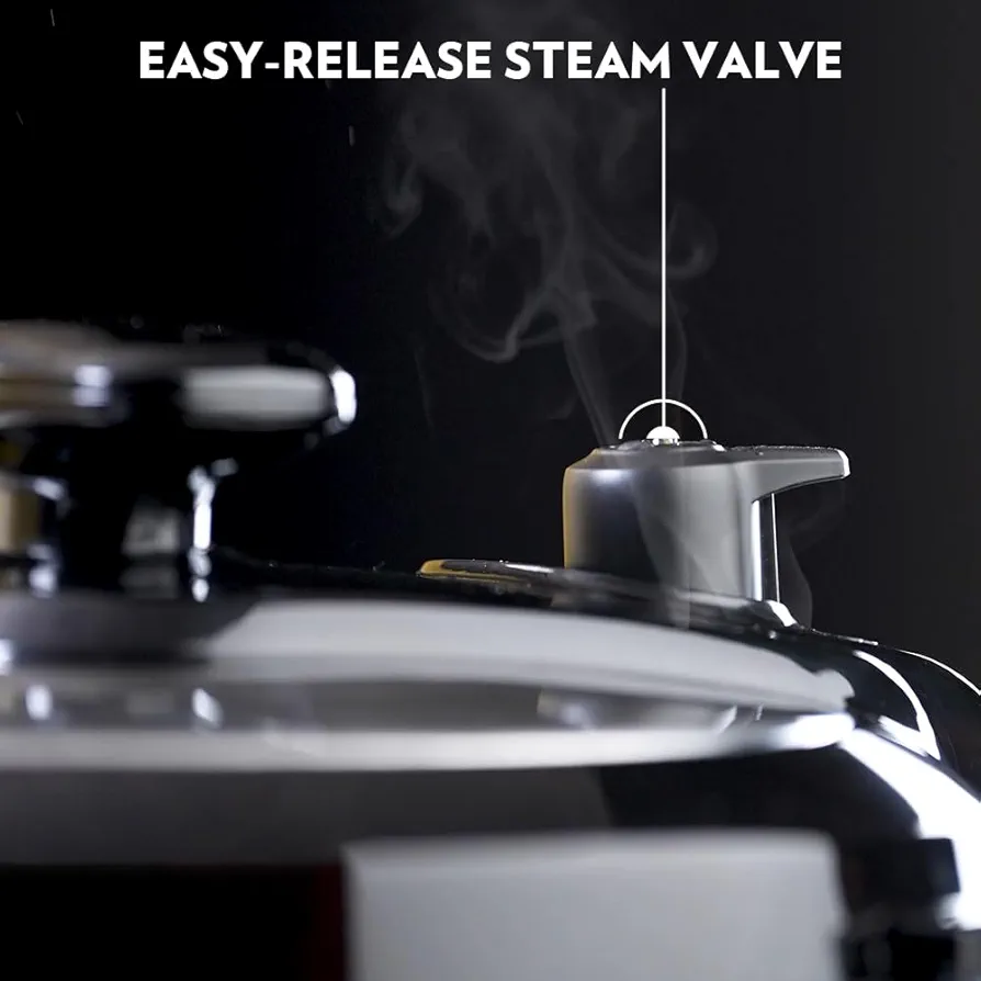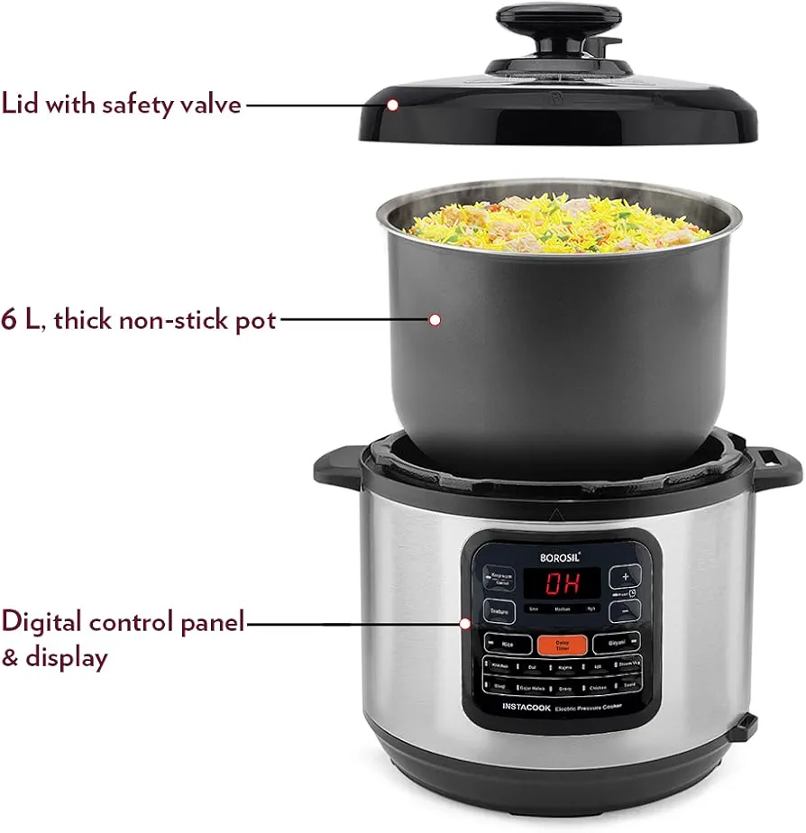 Safety First: Includes an automatic thermal cutoff for added safety and peace of mind. The press button locking system ensures the lid is securely closed during cooking. Equipped with anti-skid rubber feet for stability and a spillover prevention vent to keep your kitchen clean.