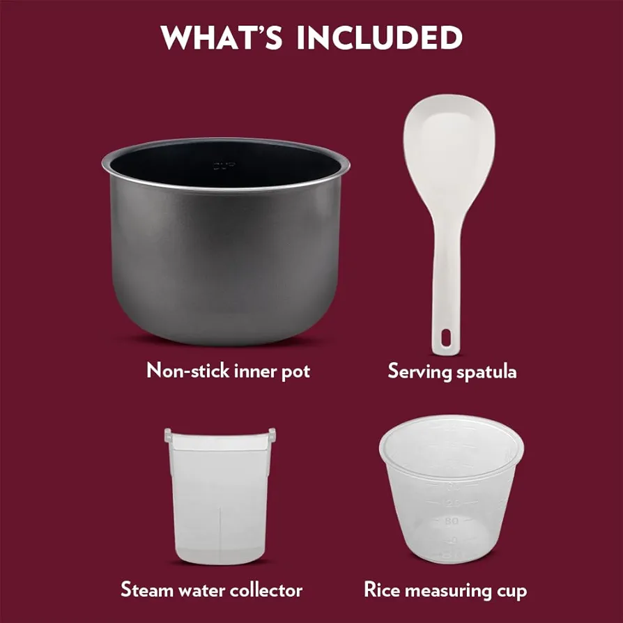 Generous Capacity: With a large 2.8 L non-stick pot, cook anywhere from 4 to 20 cups of rice, making it perfect for families and gatherings.
