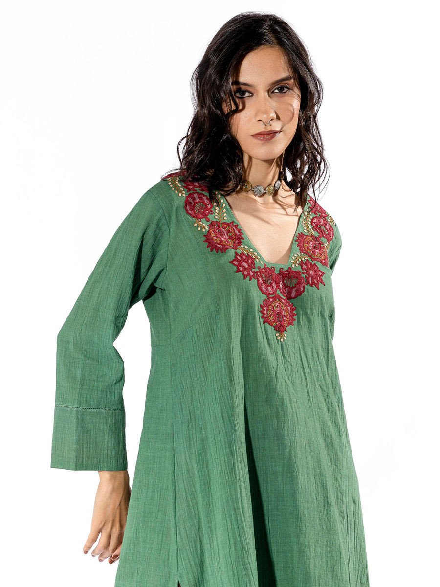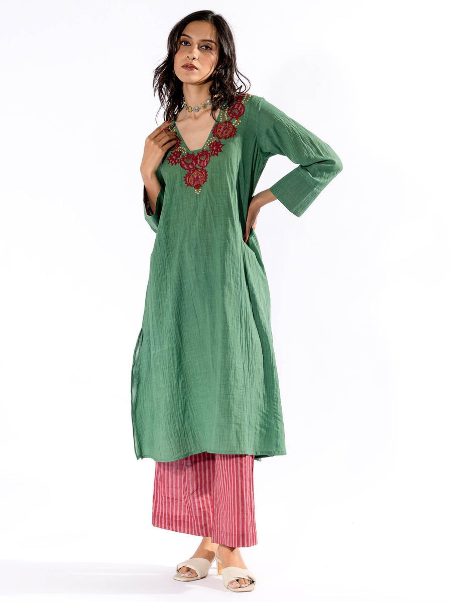 Green Embroiderd Kurta