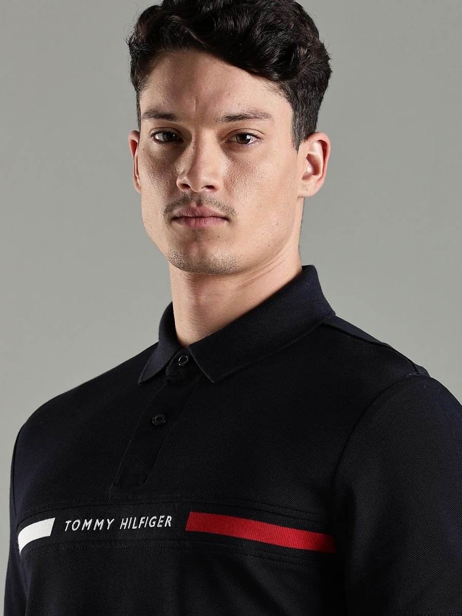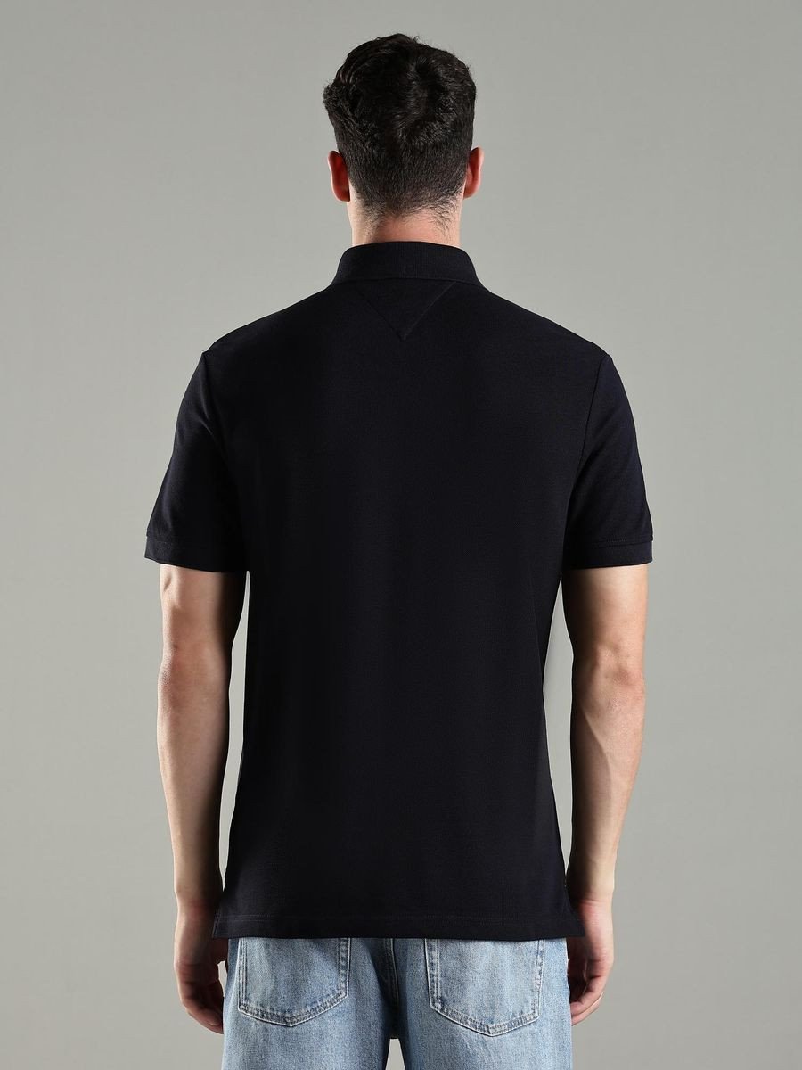 Men Navy Blue Cotton Regular Fit Polo T-Shirt