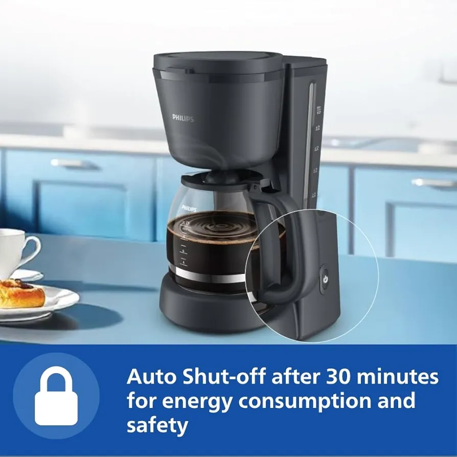 Automatic Shut off (30 mins) -30 Minutes after brewing your coffee, the coffeemaker switches off automatically for energy saving and safety.