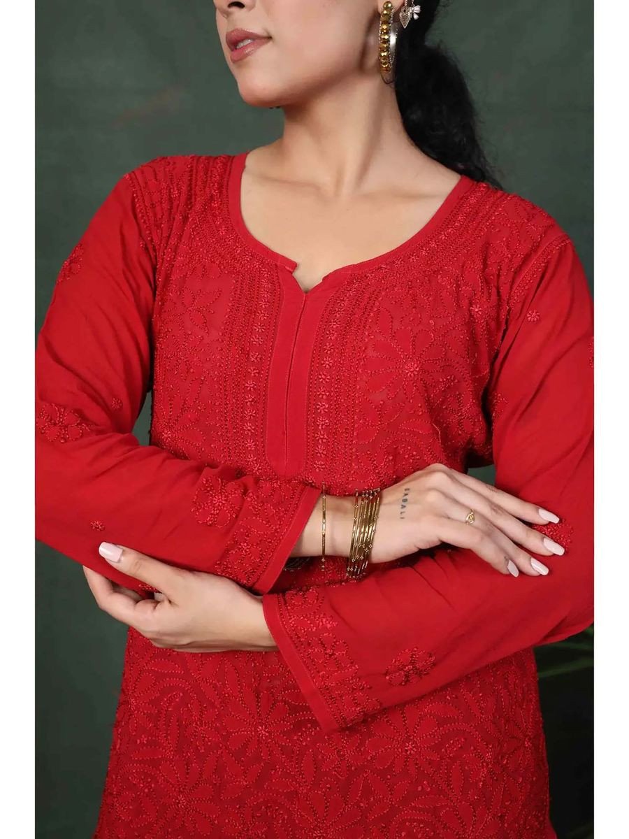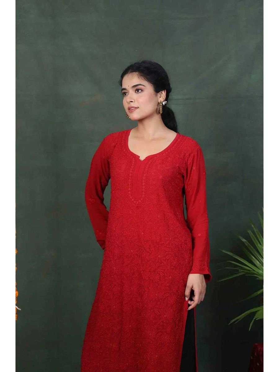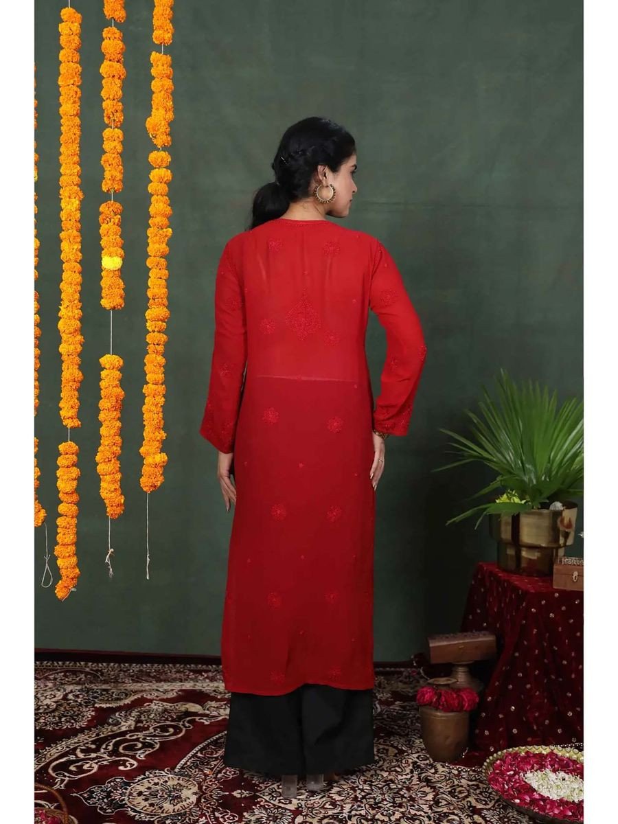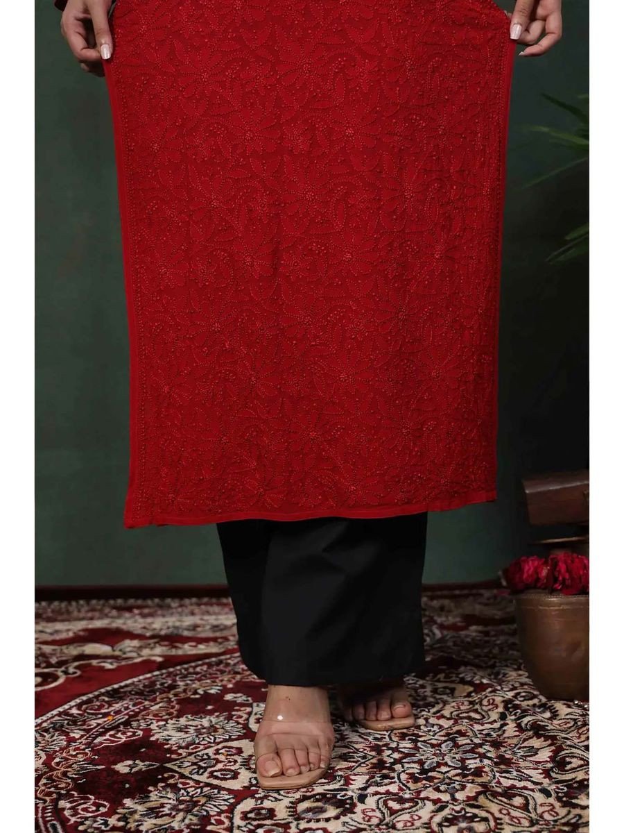 Red Viscose Floral Kurta