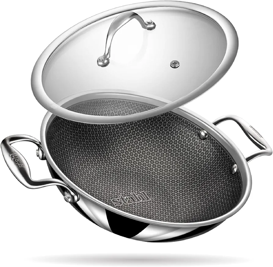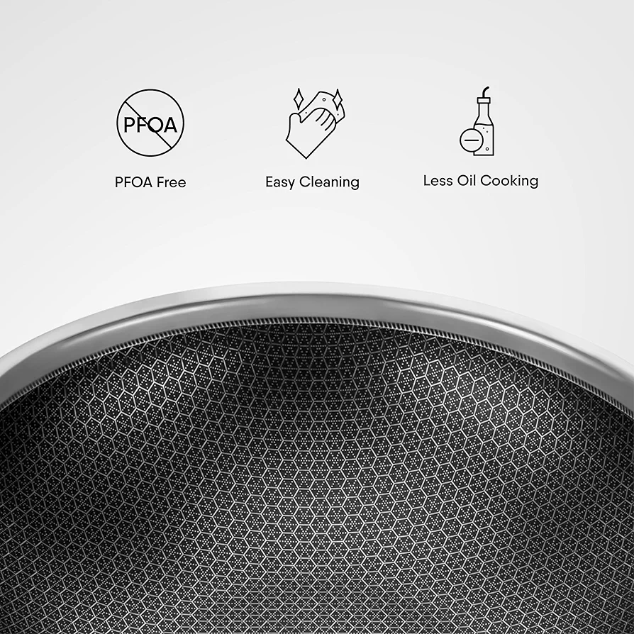 0% Contact with Aluminium, 100% PFOA free, Heat Proof Custom Designed Handles, Induction Stovetop Compatible, Spill Proof Edges0% Contact with Aluminium, 100% PFOA free, Heat Proof Custom Designed Handles, Induc…