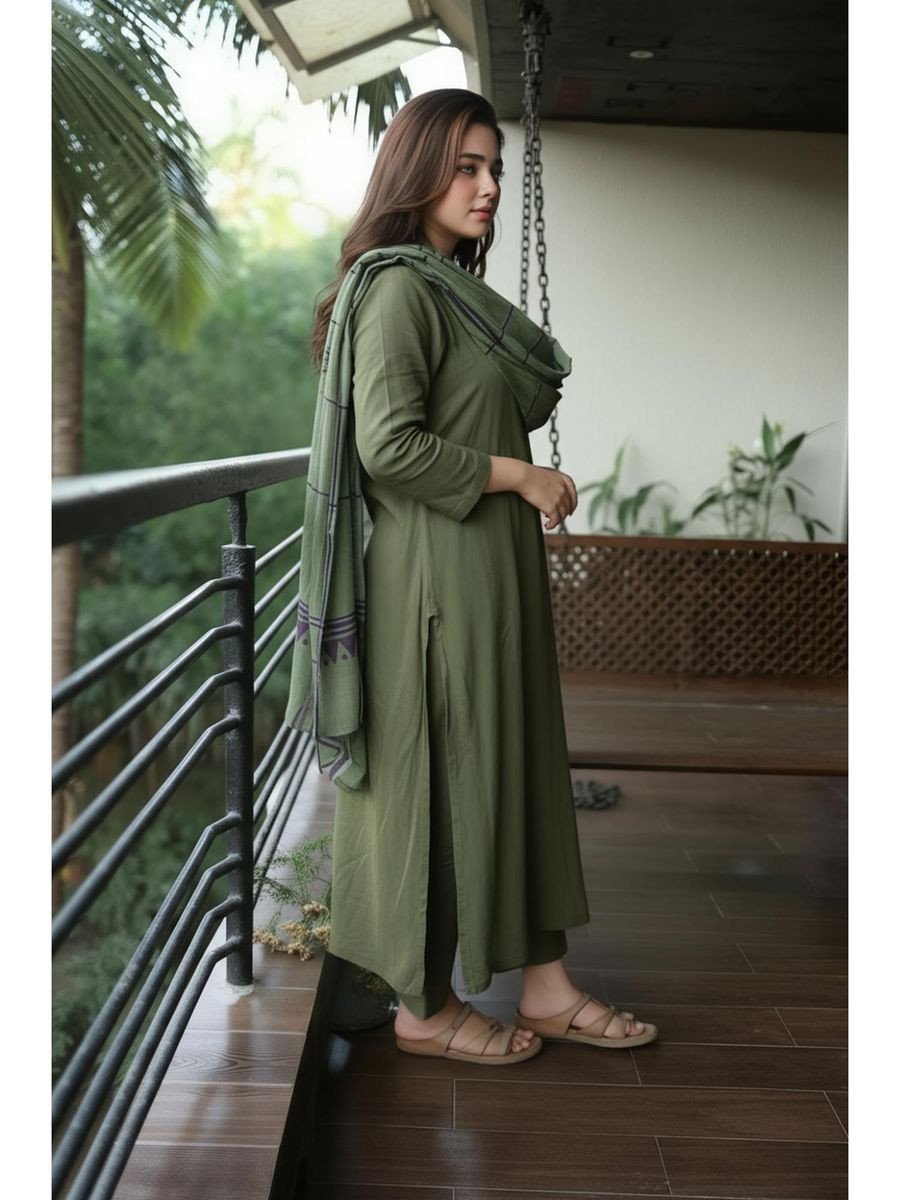 Viscose Rayon Straight Solid Kurta with Pant & Dupatta