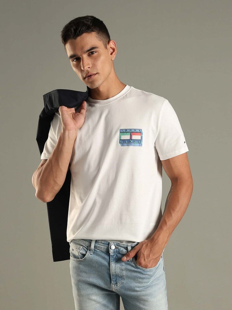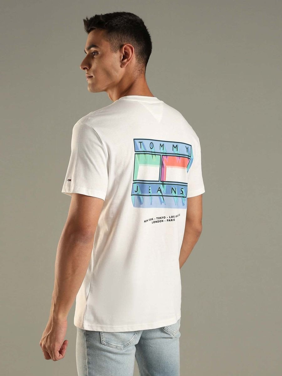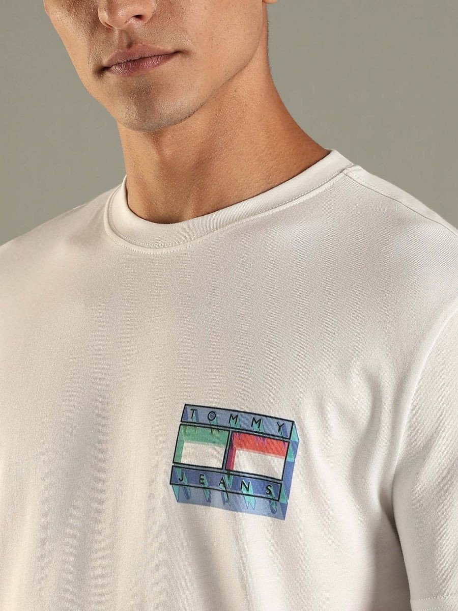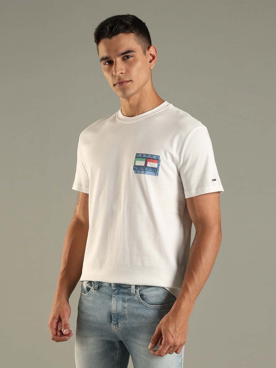 White Logo Regular Fit Cotton T-Shirt